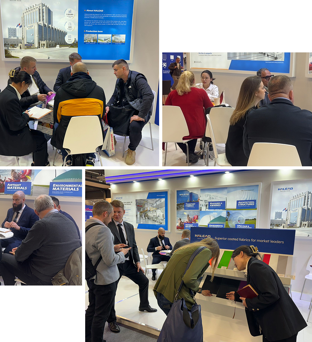 展會期間,公司接待了來自歐洲、土耳其、印度、美洲、南非、日本等國家的200余名新老客戶。同時(shí),我們還捕捉到英國、土耳其等非歐盟國家對篷布產(chǎn)品的需求有激增的趨勢,這為我們在國際市場上的擴(kuò)展提供了機(jī)遇和潛力。