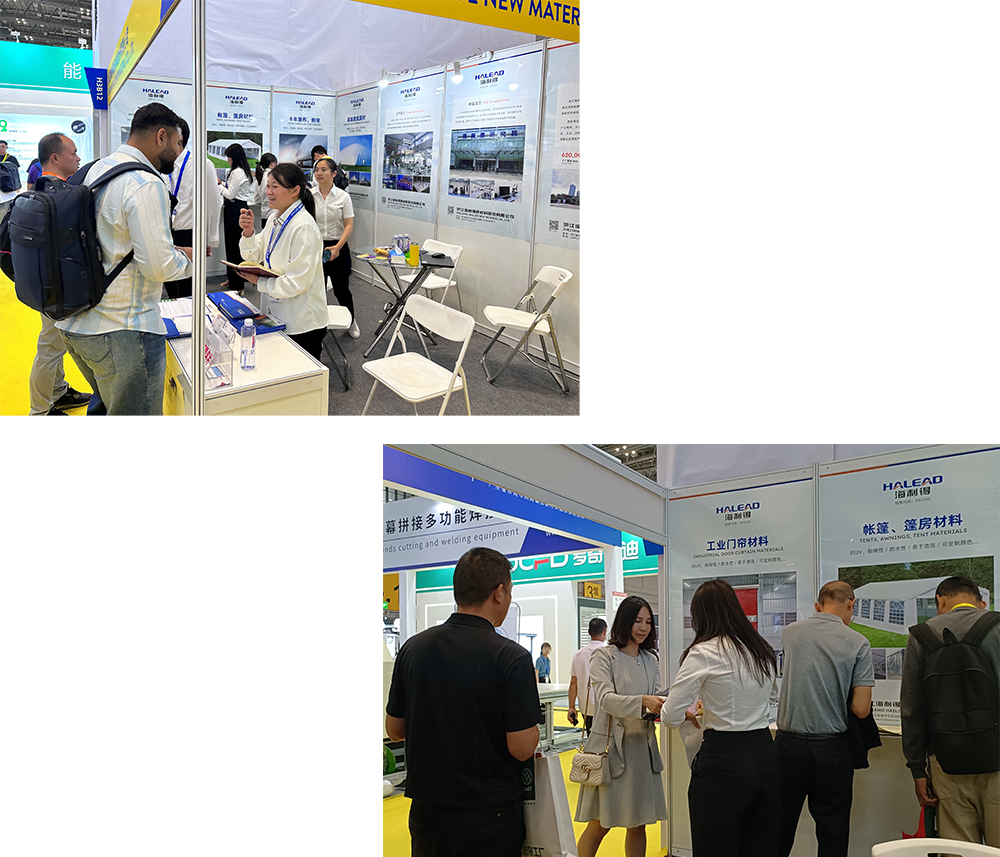本次展會(huì),我們展示了環(huán)保無(wú)味、安全可靠的門(mén)簾、篷房材料等迭代升級(jí)后的優(yōu)質(zhì)產(chǎn)品,以及可滿足客戶多樣化需求的多規(guī)格壓紋產(chǎn)品。同時(shí)還隆重推出了3D紋篷房夾黑的新產(chǎn)品,吸引了眾多參觀者的目光。這些產(chǎn)品不僅體現(xiàn)了我司在技術(shù)創(chuàng)新方面的不懈努力,也展示了對(duì)環(huán)保事業(yè)的堅(jiān)定承諾。