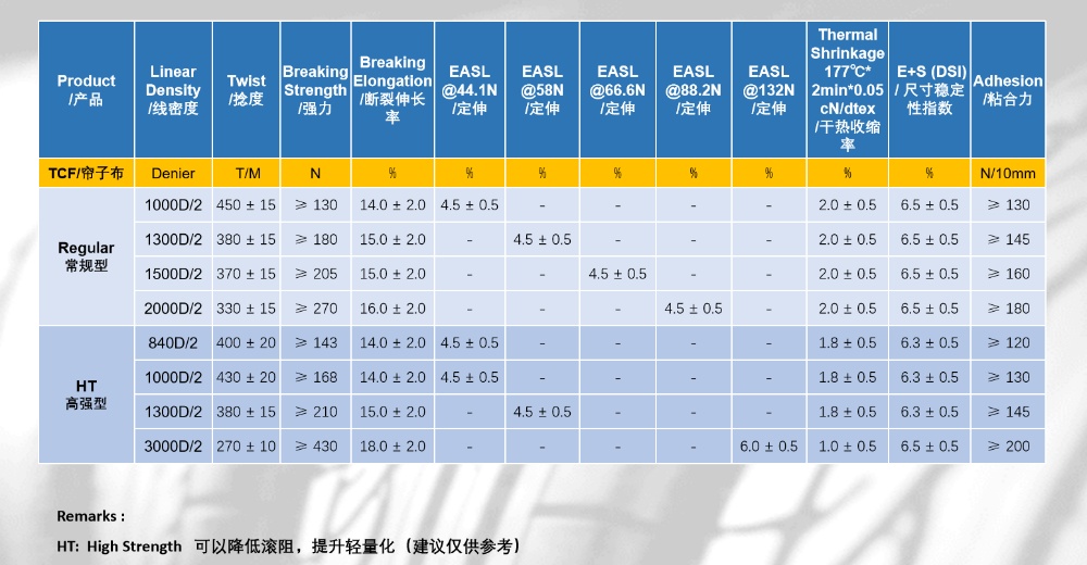 簾子布是用于輪胎和膠帶、膠管等工程橡膠制品的骨架增強材料。要求簾子布強度高、耐疲勞、耐沖擊、耐蠕變、與橡膠粘著性好、耐熱穩(wěn)定性能好、耐老化及加工工藝性能好。橡膠工業(yè)中常用的簾布有錦綸簾子布、聚酯簾子布、人造絲簾子布和芳綸簾子布等。